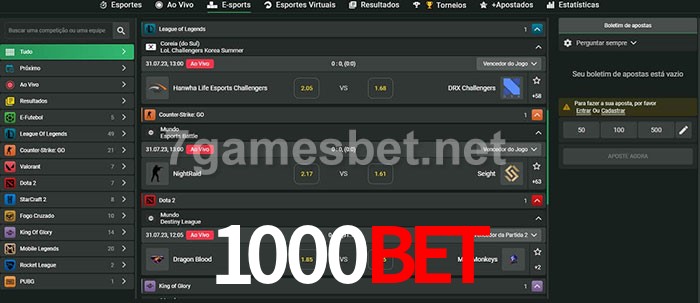 O 1000Bet oferece uma grande seleção de opções de apostas em e-sports com probabilidades competitivas